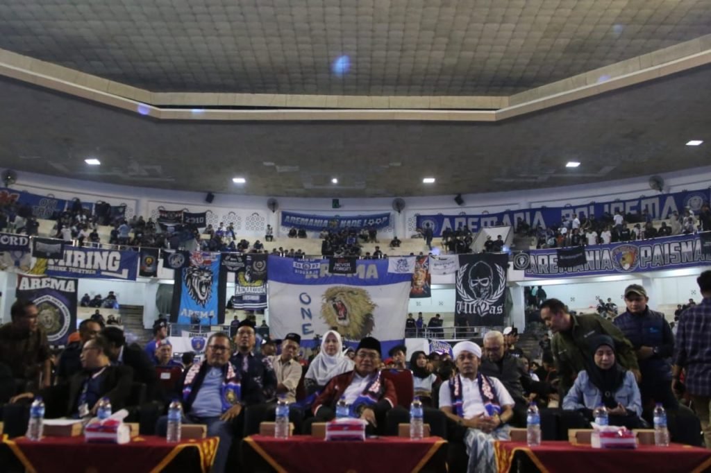 SURABAYAONLINE.CO, Malang – Menteri Koordinator Bidang Pembangunan Manusia dan Kebudayaan (Menko PMK) Muhadjir Effendy menghadiri Musyawarah Nasional (Munas) Aremania Satu di Hall Dome Universitas Muhammadiyah Malang (UMM), Kota Malang, Provinsi Jawa Timur, pada Minggu (2/6/2024).