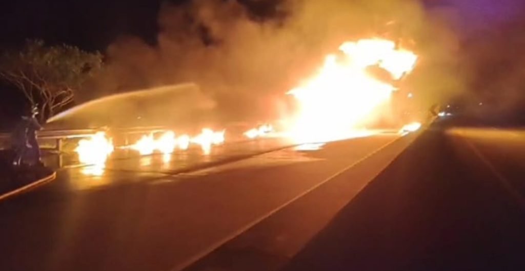 SURABAYAONLINE.CO, Ngawi – Sebuah insiden kebakaran menimpa truk tangki Pertamina di lajur dekat exit Tol Ngawi, Jawa Timur, Selasa malam (25/6/2024). Diperkirakan kobaran api sempat membocorkan tangki, hingga memuntahkan isinya ke jalanan, dan mengakibatkan api meluas hingga beberapa puluh meter.