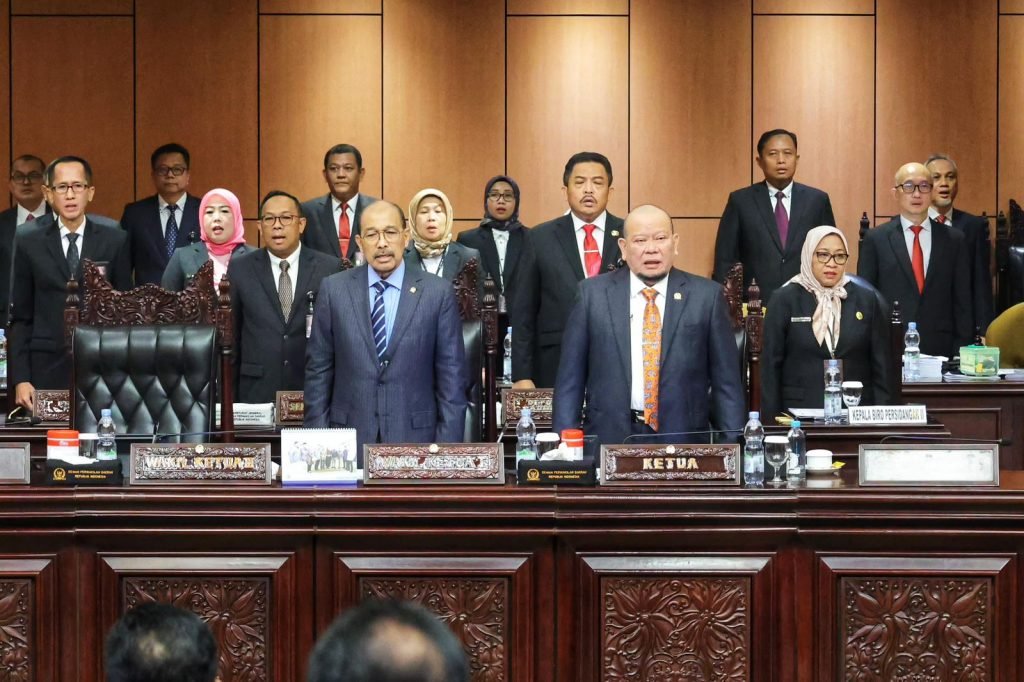 Kendati sempat diwarnai hujan interupsi, Sidang Paripurna DPD RI Masa Sidang V Tahun 2023-2024 berakhir happy ending. Silang pendapat di awal sidang akhirnya mencair, bahkan peserta sidang paripurna saling bermaafan.