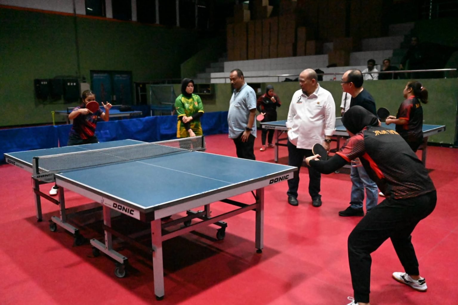 Dalam kesempatan tersebut, LaNyalla melihat langsung para atlet Puslatda tenis meja berlatih serius dengan didampingi pelatih dan Ketua Pengprov Persatuan Tenis Meja Seluruh Indonesia (PTMSI) Jatim.