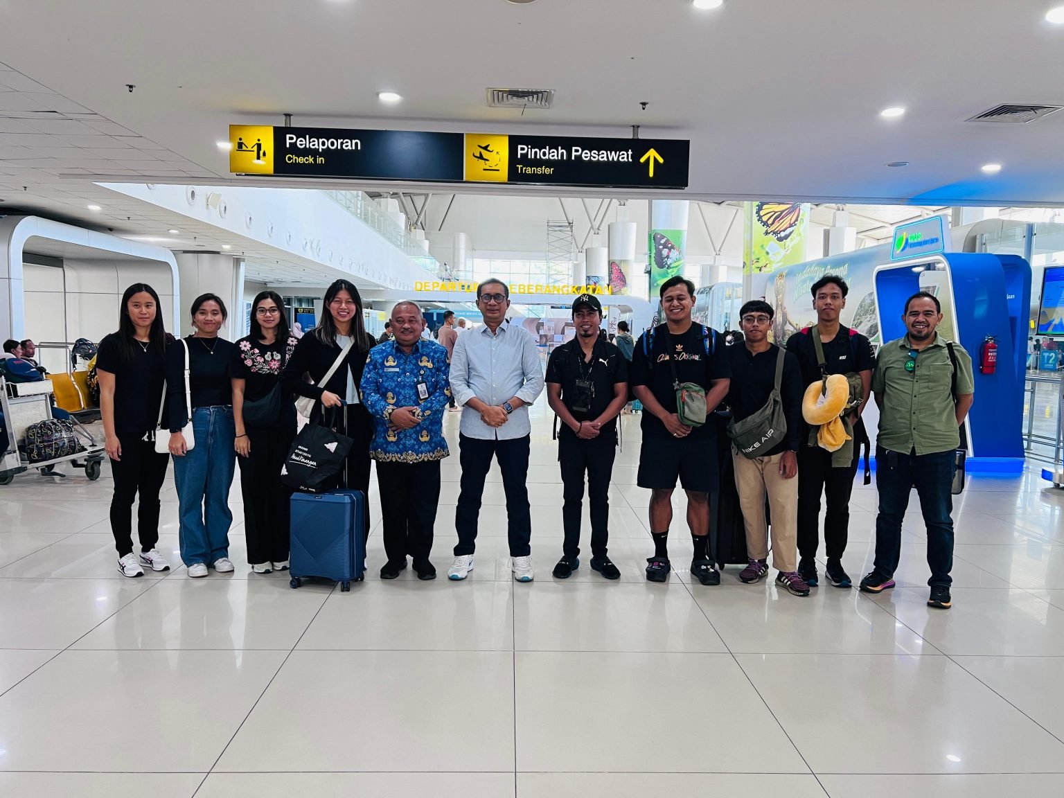 Ketua Umum POSSI Jatim Mierza Muttaqien saat melepas atlet Puslatda Selam Jatim di Bandara Juanda, Rabu (17/7/2024) untuk berangkat ke Tiongkok.