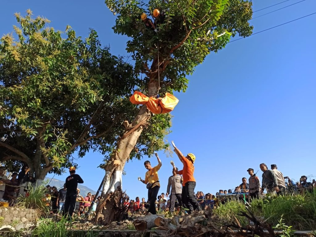 Suyadi sempat menduga korban yang tersangkut di dahan pohon itu dalam keadaan pingsan. Lantaran saat berulangkali ditegurnya dari bawah pohon, korban tidak merespon.