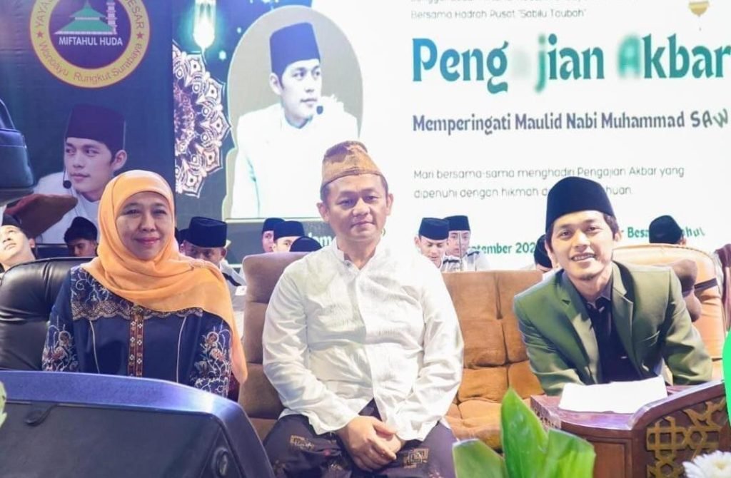 SURABAYAONLINE.CO, Surabaya – Ketua Umum PP Muslimat NU yang juga bakal calon gubernur Jawa Timur Khofifah Indar Parawansa hadir di acara maulid nabi dan pengajian akbar bersama Gus Muhammad Iqdam Kholid atau yang akrab dikenal Gus Iqdam. Acara ini diadakan di halaman Langgar Besar Miftahul Huda Rungkut, Surabaya, Minggu (1/9).