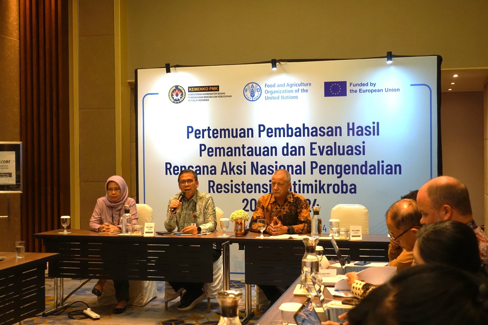 Proses M&E yang komprehensif ini telah dilaksanakan melalui kerja sama erat dengan Badan Pangan dan Pertanian Perserikatan Bangsa-Bangsa (FAO) dan dengan dukungan dari Uni Eropa (UE), melalui serangkaian pertemuan dengan kelompok kerja gugus tugas pengendalian AMR yang melibatkan berbagai kementerian dan lembaga.