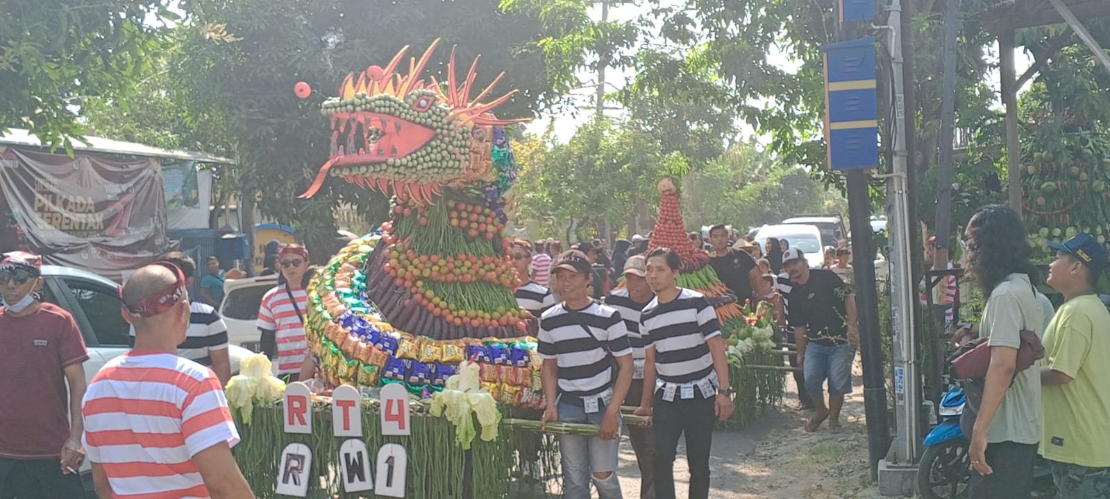SURABAYAONLINE.CO, Surabaya -Warga Desa Sumur Welud, Kecamatan Lakarsantri, Surabaya menggelar tradisi sedekah bumi, Minggu (7/9/2024). Tradisi sedekah bumi yang biasa disebut ruwah desa sebagai ungkapan rasa syukur atas kelimpahan rizki yang telah diberikan Tuhan Yang Maha Esa.