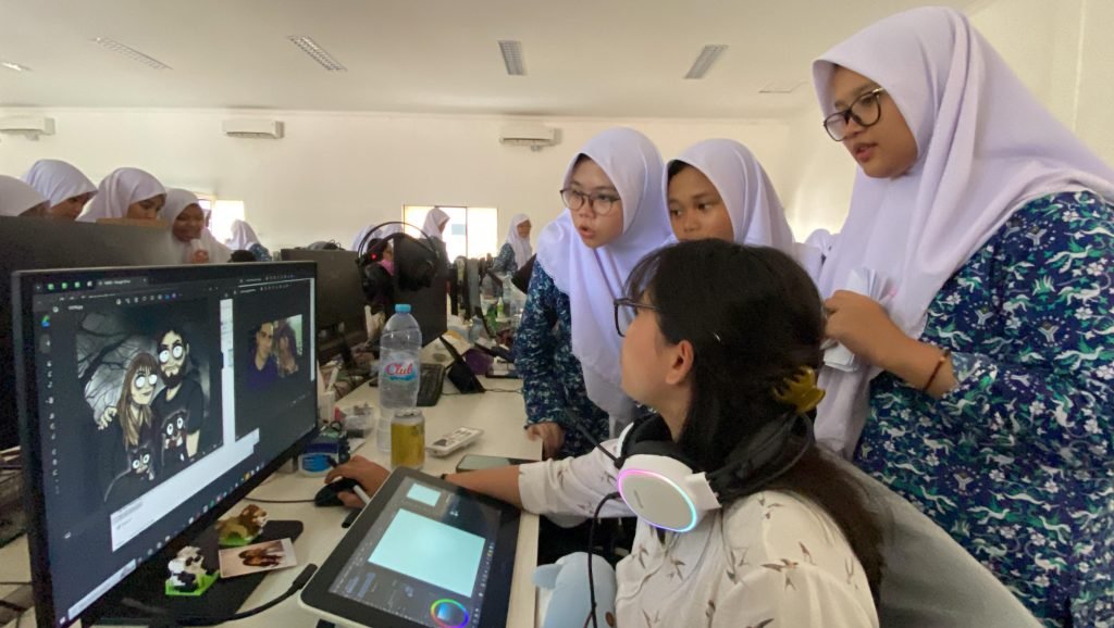 Setelah itu, kegiatan dilanjutkan dengan room tour ke berbagai devisi seperti Ilustrasi, 3D Animasi, 3D Asset, dan pembuatan game di mana siswa dapat menyaksikan proses pembuatan animasi, mulai dari konsep hingga menjadi produk akhir.