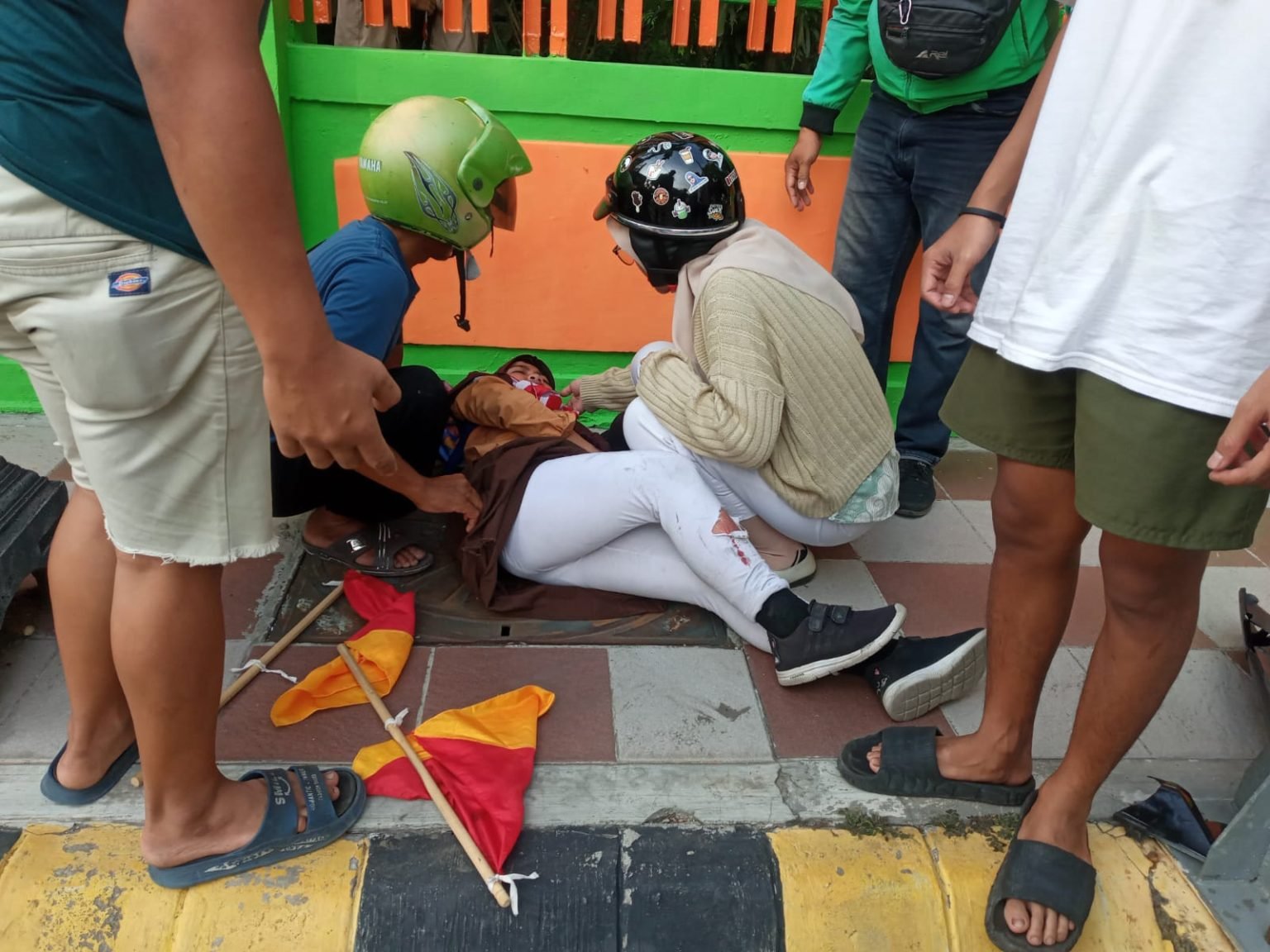 Akibatnya, seorang siswi SMP yang dibonceng wanita paruh baya pembantu rumah tangganya, tergeletak dengan darah di kepalanya. Sedangkan pengemudi motor lainnya, pria berumur mengalami luka-luka di kaki dan punggungnya.