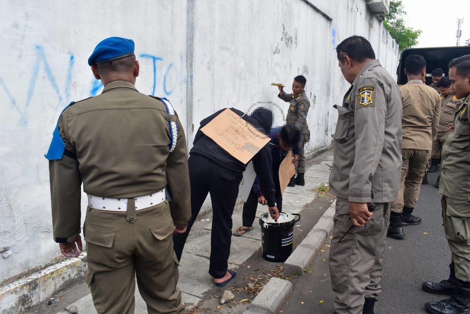 Komandan Batalion Satpol PP Kota Surabaya Mudita Dhira mengatakan, pihaknya memberikan sanksi tegas kepada kedua pemuda itu. Sanksinya berupa pengecatan ulang beberapa tembok yang menjadi sasaran aksi vandalisme.