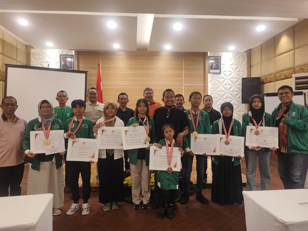 SURABAYAONLINE.CO, Surabaya – Ketua Umum Pengurus Provinsi Persatuan Catur Indonesia (Percasi) Jawa Timur, Achmad Fauzi Wongsoyudo, mengapresiasi dan bagikan bonus presatsi kepada atlet, wali atlet, serta official kontingen catur Jawa Timur yang berhasil meraih prestasi gemilang pada Kejuaraan Nasional (Kejurnas) Catur Junior VI 2024 di Depok, Jawa Barat. Acara penghargaan berlangsung di Hotel Grand Ina Tunjungan, Surabaya, pada Rabu (11/12/2024).