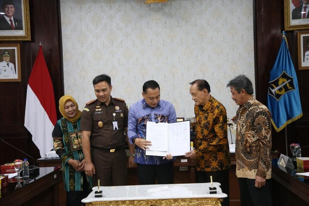 SURABAYAONLINE.CO, Surabaya – Pemkot Surabaya dan Yayasan Wijaya Kusuma melakukan penandatanganan kesepakatan atau Memorandum of Understanding (MoU) tentang penyerahan, pengamanan, dan pemanfaatan aset yang berada di Jalan Jagir Wonokromo No.112, Surabaya. Kesepakatan tersebut dilakukan dengan pendampingan notaris dan disaksikan secara langsung oleh Kepala Kejaksaan Negeri (Kejari) Surabaya Ajie Prasetya bertempat di Ruang Sidang Wali Kota, Kamis, (19/12).