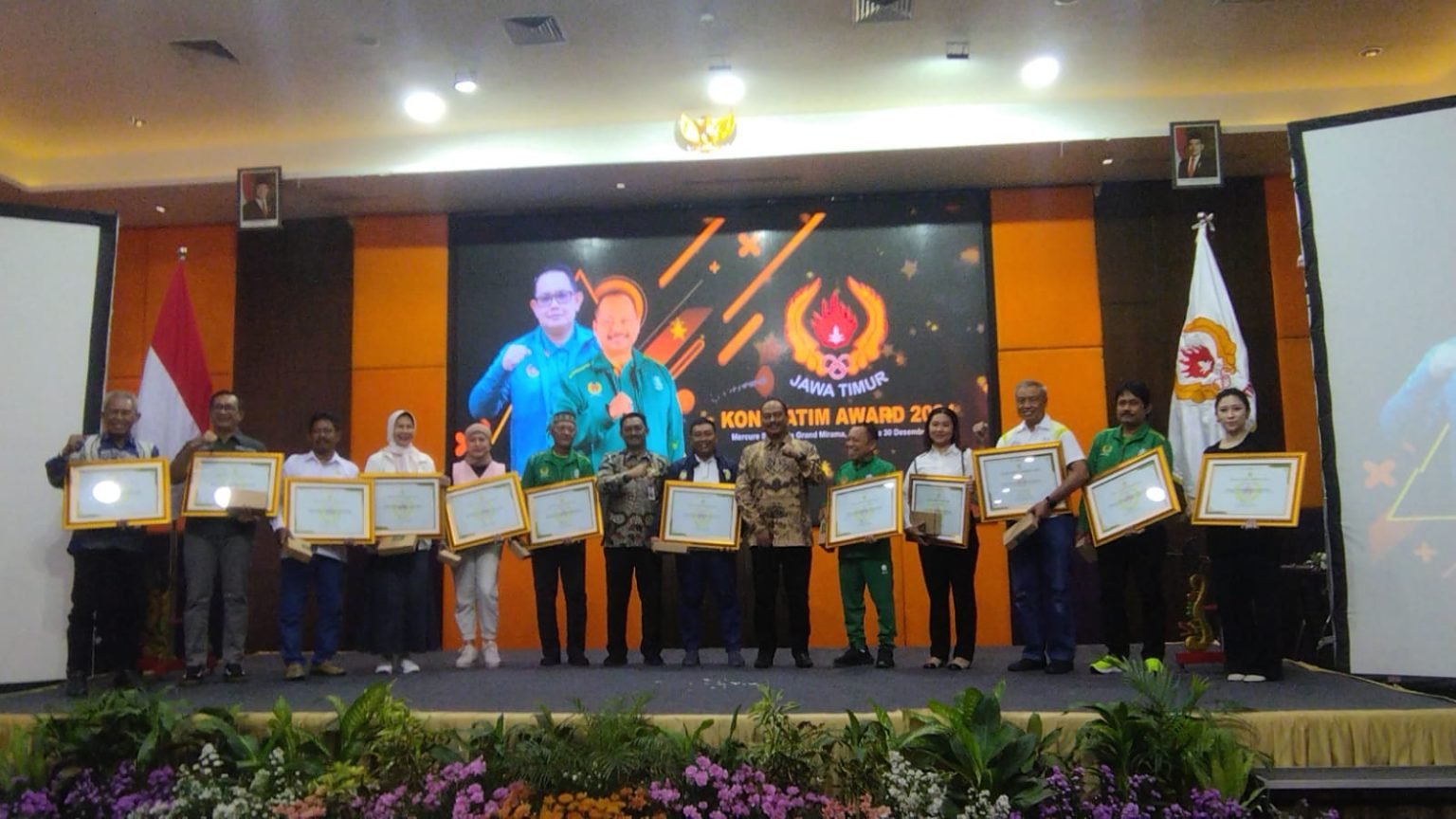 SURABAYAONLINE.CO, Surabaya  – Komite Olahraga Nasional Indonesia (KONI) Jawa Timur, menggelar acara penghargaan bergengsi untuk ketiga kalinya, yakni KONI Jatim Award 2024, yang berlangsung di Hotel Mercure Surabaya Grand Mirama, Senin 30 Desember 2024.
