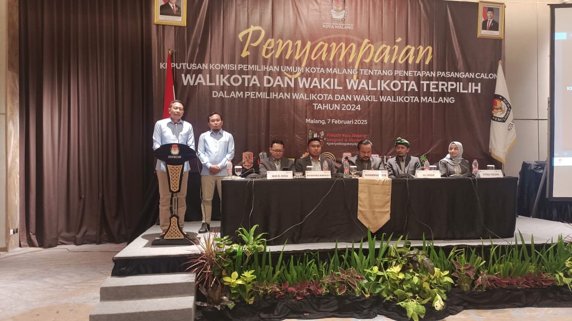 Penetapan tersebut berdasarkan Surat Keputusan KPU Kota Malang Nomor 5 Tahun 2025 yang diterbitkan pada 6 Februari 2025. Keputusan tersebut juga merujuk pada Putusan Mahkamah Konstitusi Nomor 277/PHPU.WAKU-XXIII/2025 yang dikeluarkan pada 5 Februari 2025.