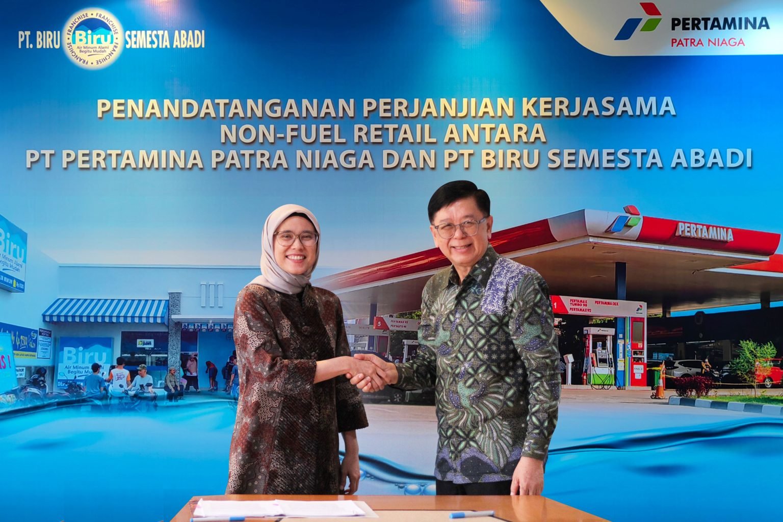 Kesepakatan ini ditandatangani oleh Direktur PT Biru Semesta Abadi Yantje Wongso dan Manager Non-Fuel Retail Business PT Pertamina Patra Niaga Kania Hapsari. Inisiatif ini merupakan langkah strategis dalam memperluas bisnis Non-Fuel Retail (NFR) di SPBU Pertamina.