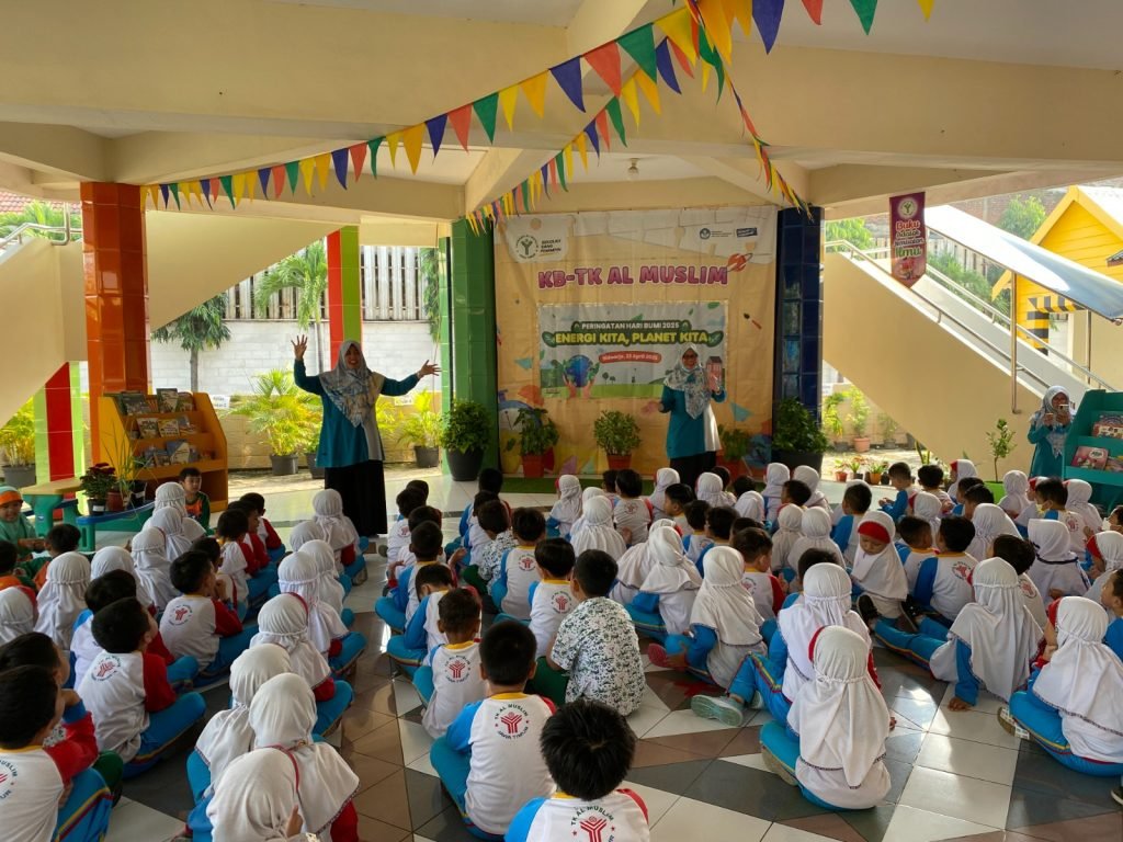 SURABAYAONLINE.CO — Dalam rangka memperingati Hari Bumi ke-55 yang jatuh pada tanggal 22 April, KB-TK Al Muslim menyelenggarakan serangkaian kegiatan edukatif dan inspiratif dengan tema “Energi Kita, Planet Kita”. Kegiatan ini bertujuan untuk menanamkan kesadaran serta kepedulian siswa terhadap bumi sebagai satu-satunya tempat tinggal yang harus dijaga kelestariannya sejak dini.