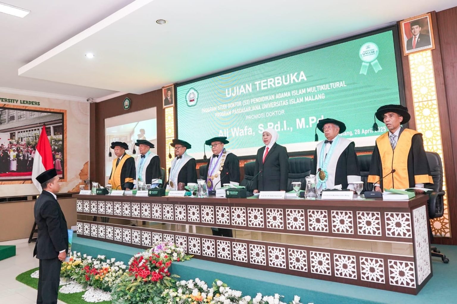 Sidang disertasi ini cukup istimewa. Sebab Promovendus Ali Wafa adalah penerima beasiswa S3 dari Lembaga Pengembangan Pesantren dan Diniyah (LPPD) Provinsi Jawa Timur yang bersumber dari APBD Pemprov Jatim.