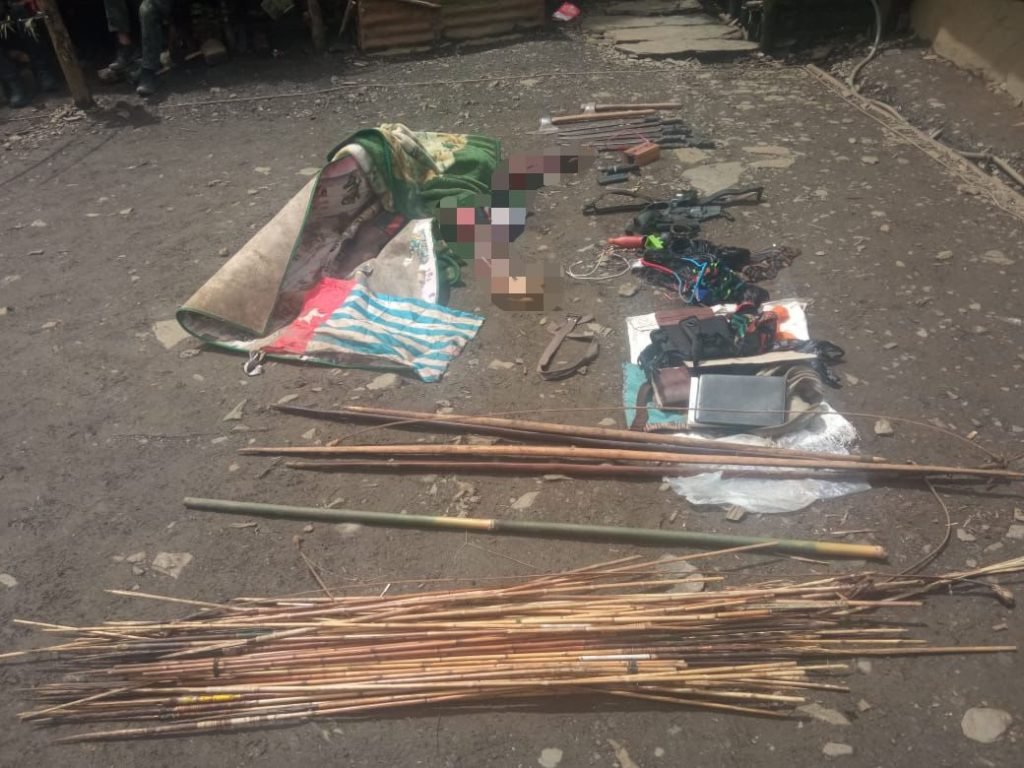 Barang-barang tersebut antara lain munisi pistol, 3 sarung pistol, 100 anak panah, busur, parang, kampak dan 3 buah HP. Yang lebih memastikan bahwa dia adalah bagian dari OPM, TNI menemukan selembar bendera bintang kejora dan dokumen milik OPM yang dikemas dalam sebuah ransel.