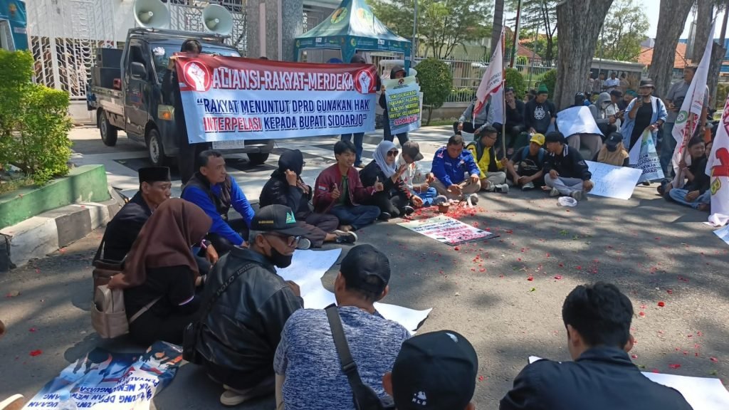 Mereka menyampaikan aspirasi terkait penolakan DPRD terhadap LPPD APBD 2024 yang disampaikan Bupati Sidoarjo. “Kami kecewa dengan kinerja Pemkab Sidoarjo yang tidak bisa mempertanggungjawabkan uang rakyat untuk pelaksanaan pembangunan selama tahun 2024,” papar Husein Koordinator aksi demo.
