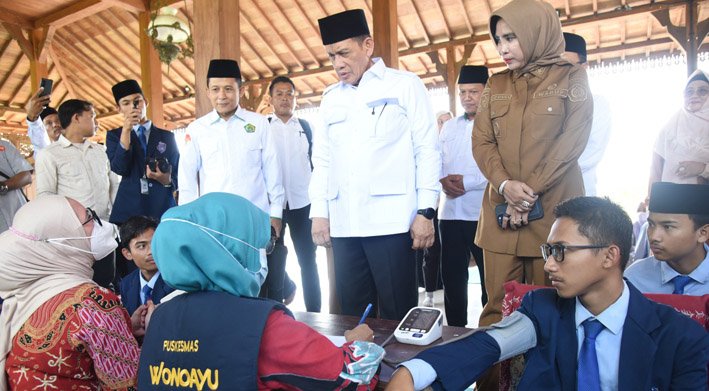 SURABAYAONLINE.CO – Kick Off program Cek Kesehatan Gratis/CKG bagi siswa sekolah serentak dilakukan seluruh wilayah Indonesia, Senin, (4/8). Pemkab Sidoarjo melaksanakan program Presiden Prabowo itu di Pondok Pesantren Modern Al-Amanah Junwangi Kecamatan Krian. Terdapat 400 santri putra putri MA Bilingual Al-Amanah yang ikut dalam pemeriksaan kesehatan gratis tersebut. Pemeriksaan kesehatan mulai dari pemeriksaan tinggi badan, berat badan, tekanan darah, gula darah sampai pemeriksaan gigi, mata dan telinga.