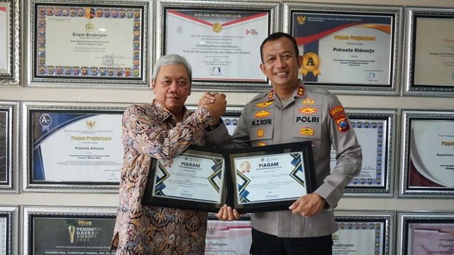 SURABAYAONLINE.CO – Dalam semester I tahun 2025, Polresta Sidoarjo mendapatkan dua penghargaan SIDO APIK dari Kantor Pelayanan Perbendaharaan Negara (KPPN) Sidoarjo. Penghargaan diserahkan Kepala KPPN Sidoarjo Didi Prihadi Wibowo kepada Wakapolresta Sidoarjo AKBP Mohammad Zainur Rofik, Jumat (22/8/2025) di Mapolresta Sidoarjo.