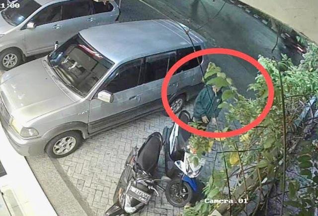 Berdasar rekaman CCTV, ciri-ciri pelaku berperawakan kurus. Dia memakai hoodie warna hijau, bertopi, dan bercelana pendek. Pelaku tak memakai penutup wajah. Rupanya terlihat samar karena letak CCTV cukup tinggi.