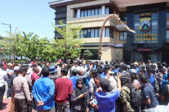 Kapolresta Sidoarjo Kombes. Pol. Christian Tobing dengan terbuka menerima aspirasi dari rekan-rekan mahasiswa, terkait penyelesaian kasus meninggalnya Affan Kurniawan oleh pihak kepolisian. “Bahwa Polri di tingkat pusat berkomitmen menangani kejadian di Jakarta secara adil, transparan dan tepat,” ungkapnya.