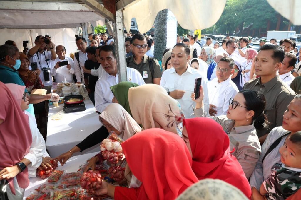 Dalam sambutannya, Menteri Amran memuji kinerja Pemkot Surabaya yang berhasil mengendalikan inflasi. Bahkan mengalami deflasi sebesar 0,07 persen. Ia menyebut bahwa Wali Kota Surabaya, Eri Cahyadi, patut menjadi contoh bagi daerah lain. “Pak Wali Kota Eri Cahyadi luar biasa, karena Surabaya deflasi 0,07 persen. Ini harus menjadi contoh bagi daerah-daerah lainnya,” ujar Menteri Amran.