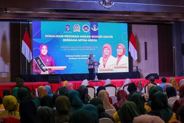SURABAYAONLINE.CO, Surabaya – Pemkot Surabaya menunjukkan dukungan penuh terhadap program Makanan Bergizi Gratis (MBG) yang digagas oleh Presiden Prabowo Subianto melalui Badan Gizi Nasional (BGN). Dukungan tersebut ditegaskan dalam kegiatan sosialisasi Program Makanan Bergizi Gratis bersama mitra kerja bertema Bersama Mewujudkan Gizi Berkualitas untuk Generasi Sehat Indonesia.