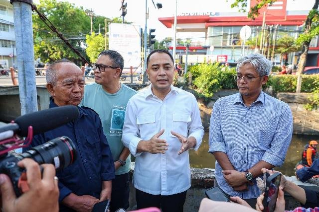 SURABAYAONLINE.CO, Surabaya – Wali Kota Surabaya Eri Cahyadi bersama General Manager Sales and Operation Region III Perusahaan Gas Negara (PGN) Hedi Hedianto dan Dosen Institut Teknologi Sepuluh Nopember (ITS) Surabaya Amien Widodo, memantau langsung semburan di sungai Rungkut Tengah, Sabtu (18/10) sore.