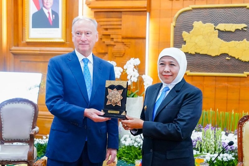 SURABAYAONLINE.CO – Gubernur Jawa Timur Khofifah Indar Parawansa menerima kunjungan kehormatan Penasihat Presiden Federasi Rusia, H.E. Nikolai Patrushev, bersama delegasi tingkat tinggi Dewan Maritim Federasi Rusia di Gedung Negara Grahadi, Surabaya, Rabu (5/11/2025).