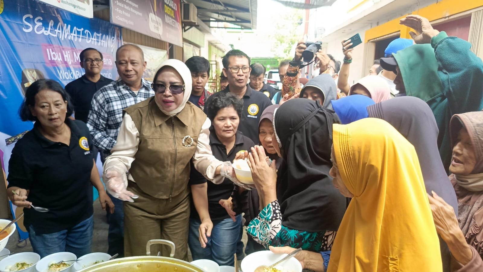 SURABAYAONLINE.CO – Program Presiden Prabowo Makan Bergizi Gratis (MBG), Wakil Bupati Sidoarjo Hj Mimik Idayana, menghadiri kegiatan bakti sosial Makan Gratis Sehat dan Bergizi yang digelar di Dapur Umum Yayasan Kasih Anugrah Besar (YKAB), Blukid Square, Kecamatan Sidoarjo, Sabtu (13/12/2025).