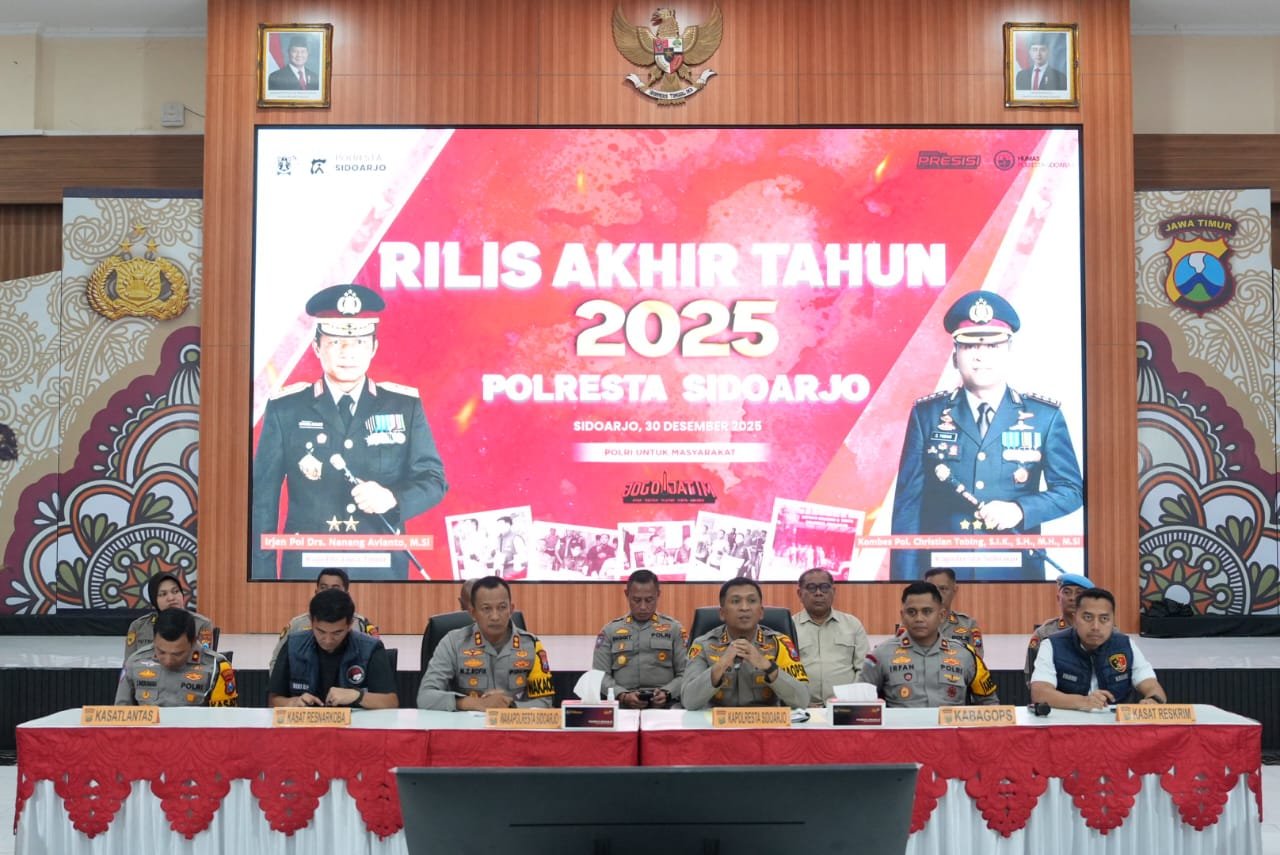 SURABAYAONLINE.CO – Polresta Sidoarjo menyampaikan capaian kinerja kamtibmas yang berhasil dilakukan dalam kurun waktu satu tahun. Hasil tersebut disampaikan dalam rilis akhir tahun 2025, di Mapolresta Sidoarjo, Selasa (30/12/2025).
