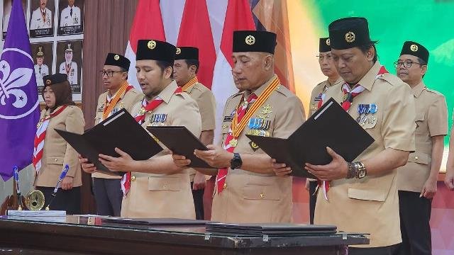 SURABAYAONLINE.CO, Surabaya – Ketua Kwartir Nasional (Kwarnas) Gerakan Pramuka, Komjen Pol (Purn) Budi Waseso melantik pengurus Majelis Pembimbing Daerah (Mabida) Kwartir Daerah (Kwarda), dan Lembaga Pemeriksa Keuangan (LPK) Gerakan Pramuka Jawa Timur masa bakti 2025-2030 di Gedung Negara Grahadi, Rabu (11/2).