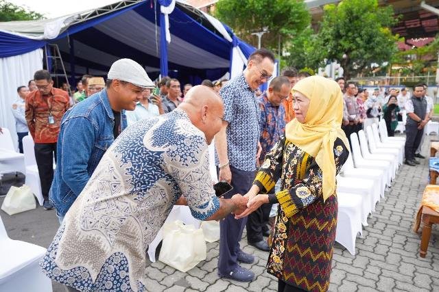 SURABAYAONLINE.CO, Surabaya – Gubernur Jawa Timur Khofifah Indar Parawansa menyerahkan truk yang telah dinormalisasi dimensinya kepada perwakilan sopir di halaman Kantor Dinas Perhubungan (Dishub) Jawa Timur.