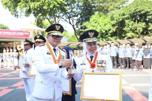 SURABAYAONLINE.CO, Jakarta – Gubernur Jawa Timur Khofifah Indar Parawansa menerima penghargaan atas Prestasi Penyelenggaraan Pemerintah Daerah dengan skor 3,4695 dan status kinerja tinggi dari Menteri Dalam Negeri (Mendagri). Penghargaan diberikan dalam Peringatan Hari Otonomi Daerah XXX Tahun 2026 di Kantor Kementerian Dalam Negeri RI (Kemendagri), Jakarta, Senin (27/4).