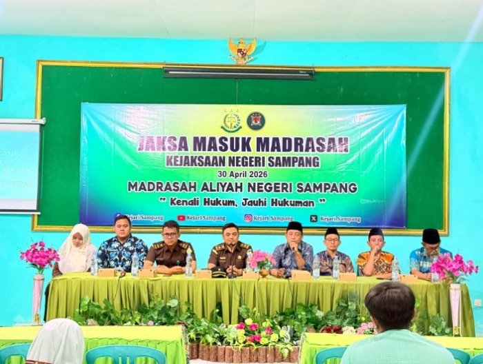 SAMPANG – Kejaksaan Negeri (Kejari) Sampang kembali memperkuat literasi hukum di kalangan pelajar melalui program Jaksa Masuk Madrasah (JMM). Mengusung slogan ikonik “Kenali Hukum, Jauhi Hukuman”, kegiatan ini digelar di Aula MAN Sampang pada Kamis (30/4/2026).